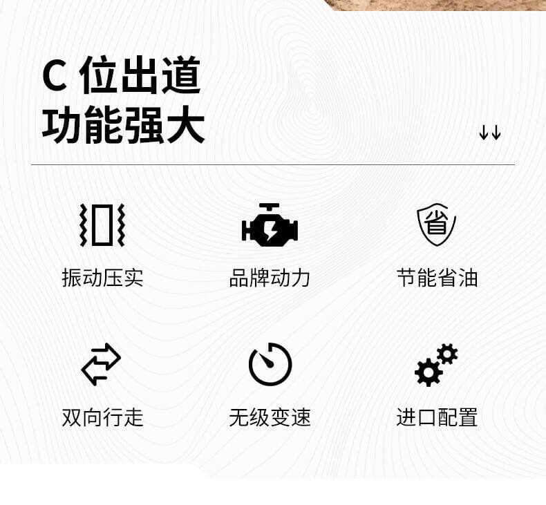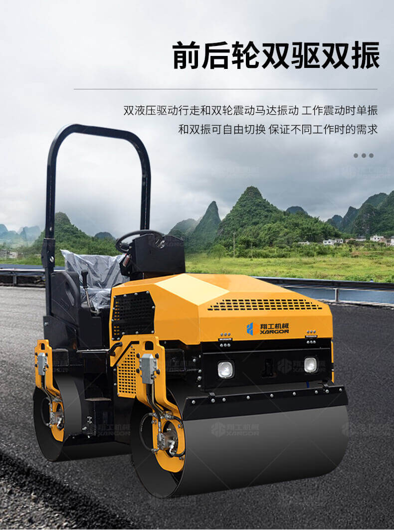 采用進口液壓系統(tǒng),雙驅(qū)雙振,前后輪可單獨調(diào)節(jié)振動,亦可同時振動。液壓轉(zhuǎn)向,液壓驅(qū)動,液壓行走,液壓振動。進口英國鉑金斯柴油機三缸水冷四沖程,動力強勁,性能穩(wěn)定。超快速度一小時可達12千米,無極變速。壓土,碎石,壓瀝青,壓回填土效果超乎想象。