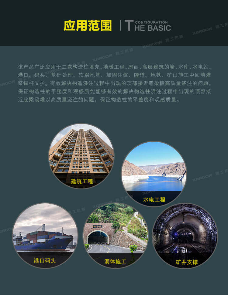 3.此泵機(jī)體積小,施工方便,操作簡單,可樓面直接澆注,大大降低了勞動強(qiáng)度。