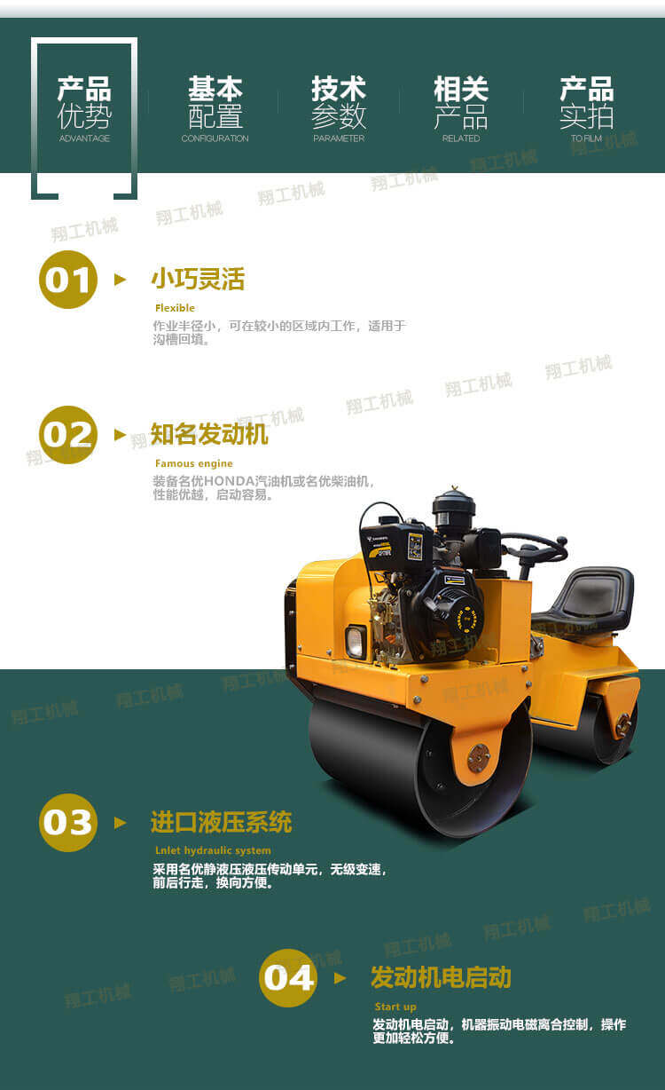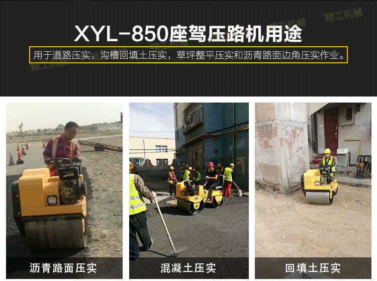 850小型座駕壓路機其結構緊湊,操作靈活,振動力強大廣泛應用于狹長道路壓實,溝槽回填土壓實,草坪整平壓實和瀝青路面邊角壓實作業(yè)。