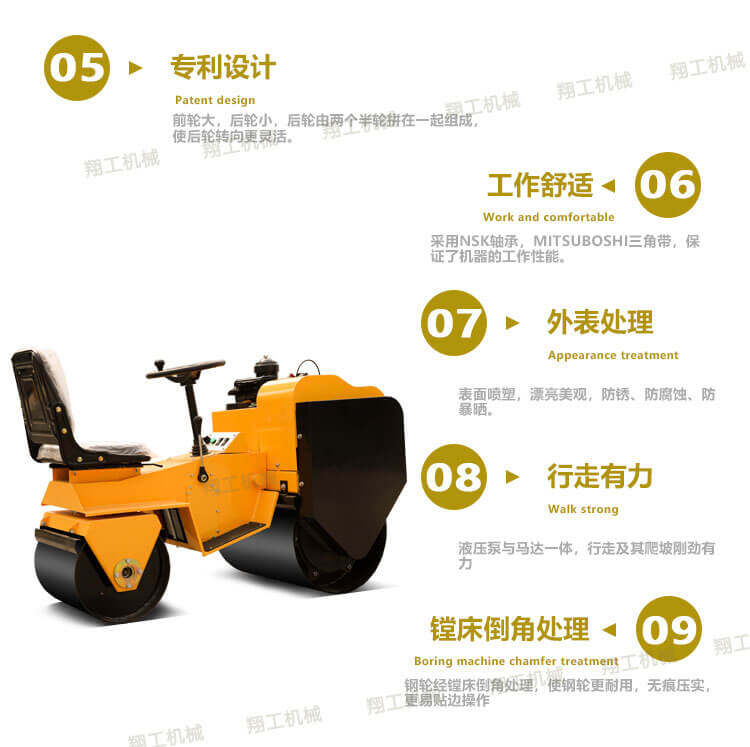 山東翔工XYL-850座駕壓路機=無縫鋼輪 進口軸承(軸承決定壽命) 原裝進口美國丹弗斯液壓系統(tǒng) 加黃油的黃油孔 常發(fā)6馬力風冷柴油機 無極變速 2t壓實力 電磁離合振動 單獨的震動按鈕 前進后退手柄 可靜碾可震動 鋼輪采用鏜床技術(故障率更低)。