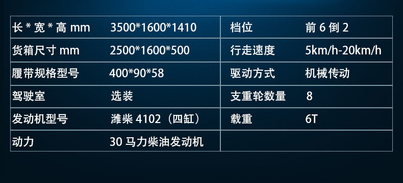 履帶運輸車是專門提供復雜路況運輸工作的機器,適用于普通運輸車輛無法或者不適合通行的地方。履帶運輸車以履帶代替了輪式行走,降低了對地面的損傷,同時履帶行走裝置降低了機器與地面的單位面積壓力,適用于山林、田地、沼澤、沙地、草地、雪地以及土質(zhì)松軟或氣候條件不太發(fā)的接近角和離地角。