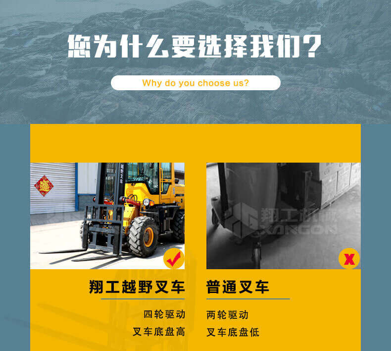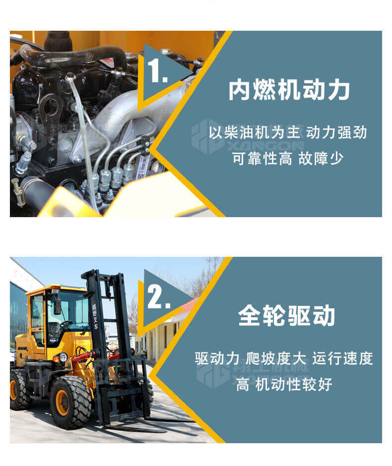 1.普通叉車(chē)是兩輪驅(qū)動(dòng)的,而越野叉車(chē)是四輪驅(qū)動(dòng)的。