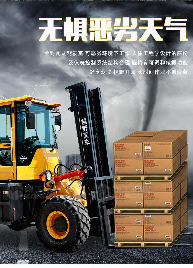 4.越野叉車(chē)的速度高于普通叉車(chē),目前已發(fā)展到40km/h,其機(jī)動(dòng)性顯而易見(jiàn)。