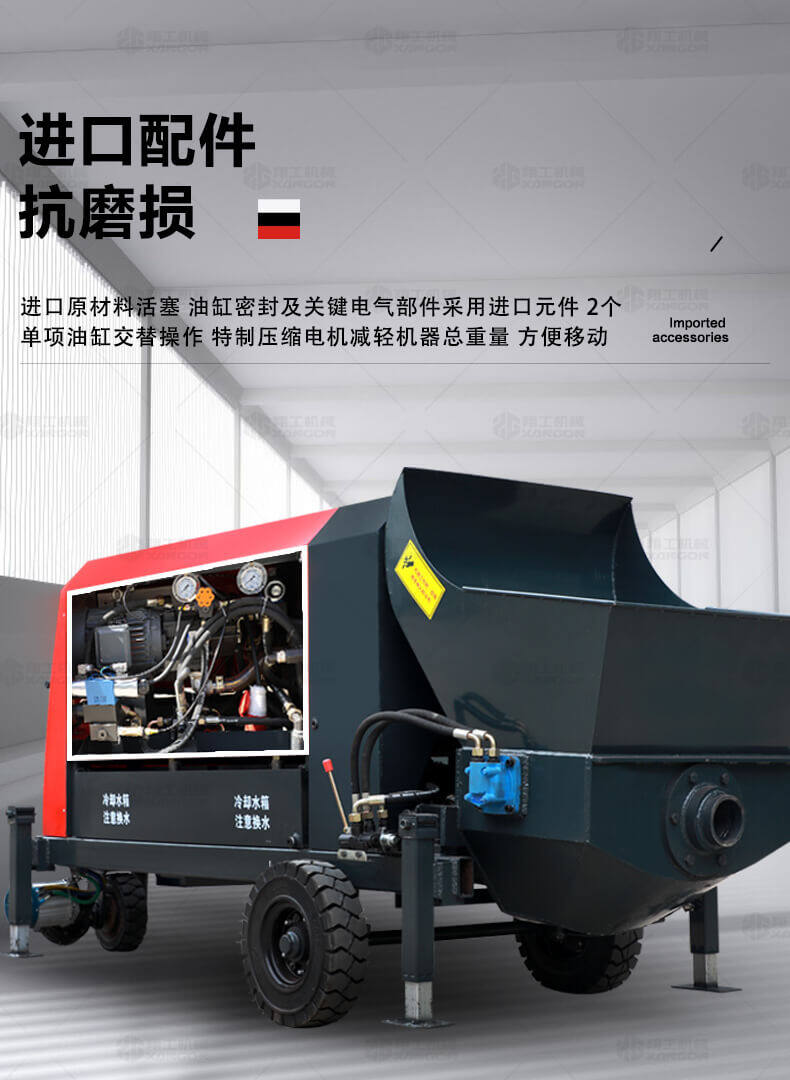 這款7.5KW型澆筑泵帶有自動攪拌功能,性能可靠,設(shè)備各個(gè)結(jié)構(gòu)制造科學(xué),電機(jī)功率大、性能穩(wěn)定、施工效率高等優(yōu)勢,使用電動澆筑泵大大提高了施工效率,降低勞動強(qiáng)度,節(jié)約人工,被廣泛應(yīng)用。是工程施工的好幫手。
